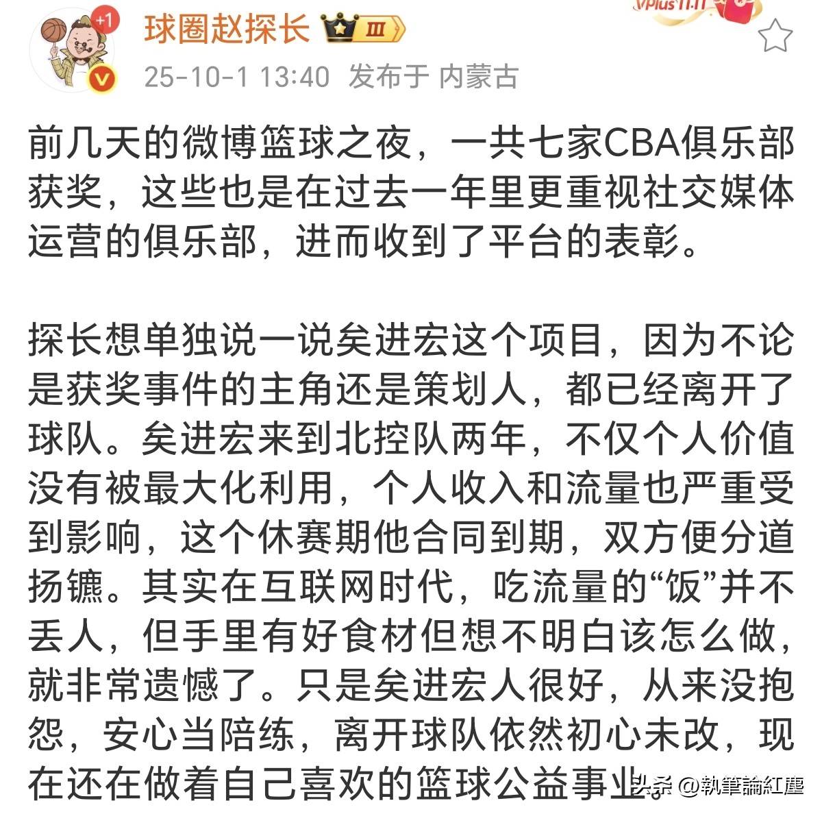 他进一步指出,尽管矣进宏没有在北控得到更多的机会,但他从未抱怨,始终以陪练的身份默默奉献,直到离开时,他依然初心未改,继续做自己热爱的篮球公益事业。